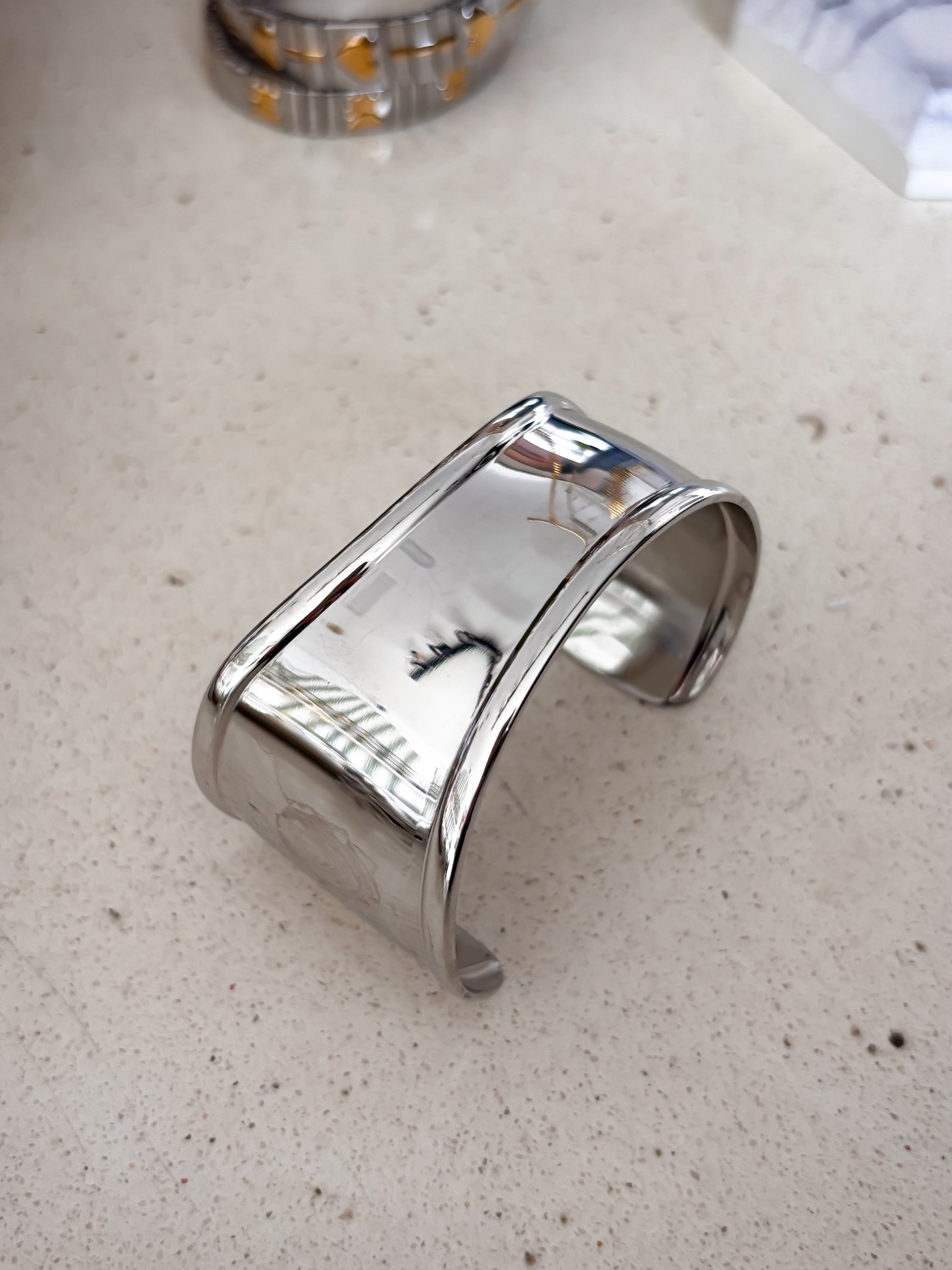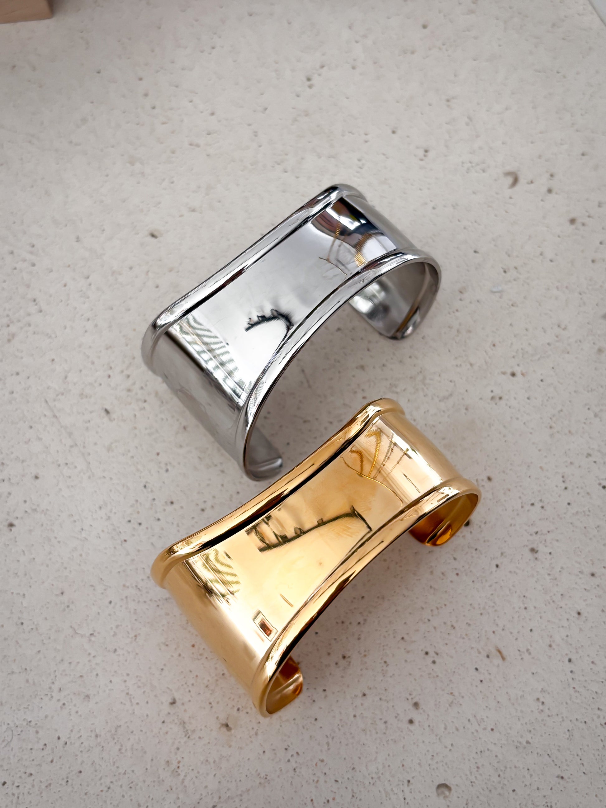 Brazalete "Emma" en acero inoxidable. Plateado y Dorado