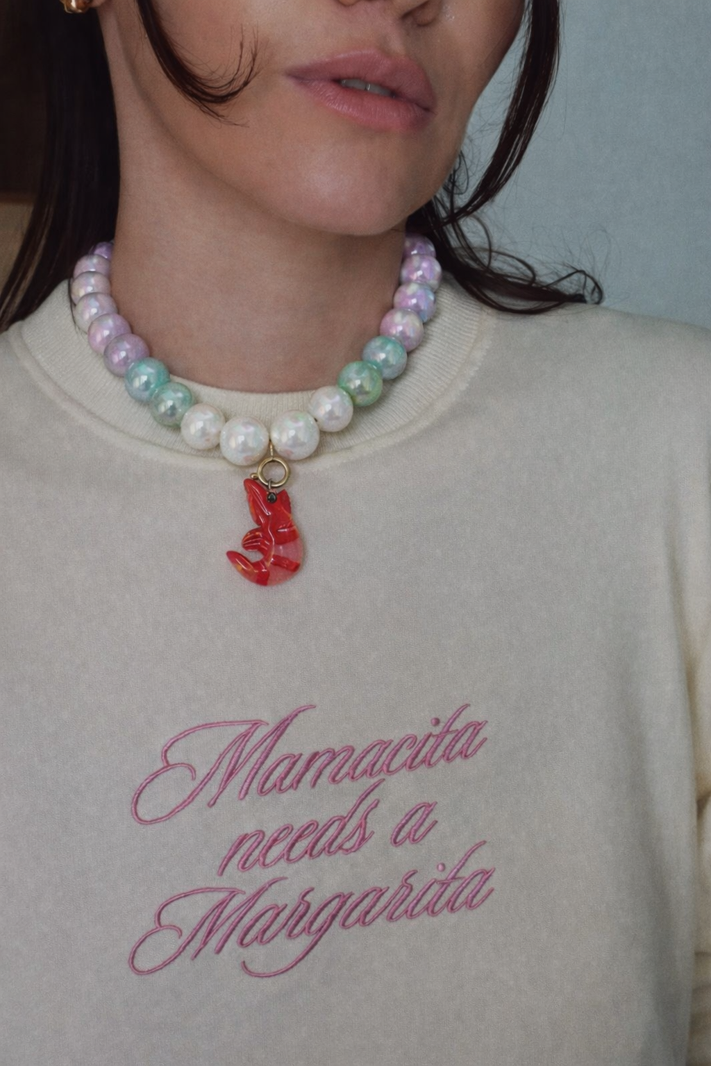 Collar Shrimp love unico en acero inoxidable y resina.